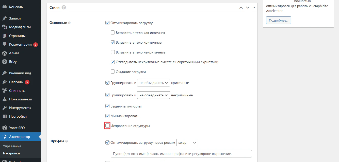 Как установить и настроить плагин Seraphinite Accelerator