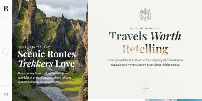 Behold — это современная и стильная тема для личных блогов, включая тревел-направление. В ней есть готовые шаблоны для историй о путешествиях и приключениях, предустановленные макеты для разных типов блогов и полная совместимость с Elementor для простой настройки. Отличный выбор для тех, кто ценит минимализм и визуальную эстетику.
