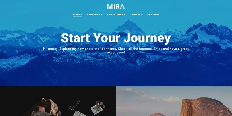 Mira — это тема, которая позволяет рассказать историю с помощью фотографий. Очень эстетичная, с множеством макетов под разные типы постов. Я использовала её для фото-дневника по Италии, и она выглядела просто волшебно.