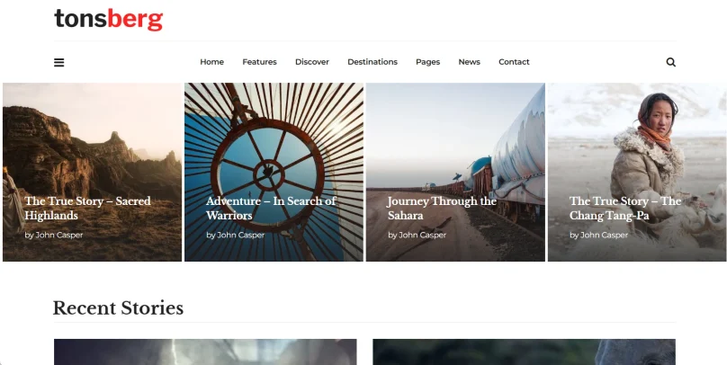 Если вы любите лаконичный и структурированный дизайн — Tonsberg для вас. Простая и одновременно функциональная тема, в которой ничего лишнего. Она отлично подойдёт как для новичков, так и для опытных блогеров.