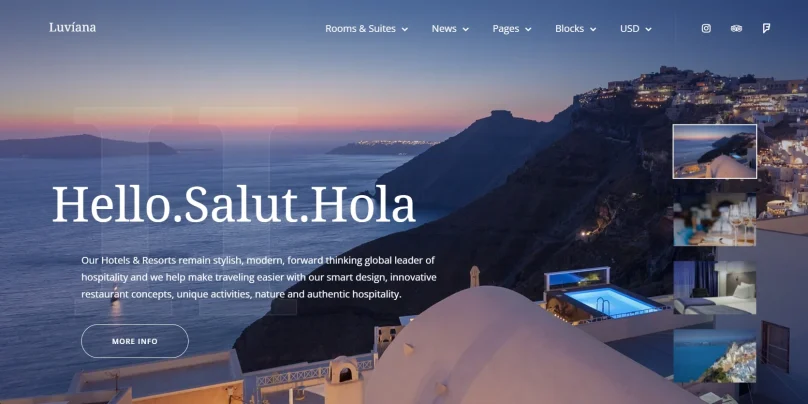 Подходит для классических гостиниц, мотелей и хостелов. Есть встроенная система бронирования, платежи через PayPal и поддержка WPML — удобно, если вы принимаете гостей из разных стран.