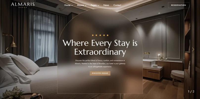 Эта тема понравится тем, кто ценит универсальность. Подходит и для бутик-отелей, и для туристических апартаментов. Есть детальная страница каждого номера, возможность онлайн-оплаты и мультиязычность.