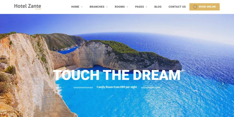 Очень лёгкий и чистый дизайн. Идеально подойдёт для морских курортов, эко-отелей и небольших резортов. Шаблон поддерживает онлайн-оплату через популярные платёжные системы, включая PayPal и Stripe.