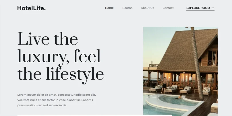 Этот шаблон стал настоящей находкой для небольших отелей и хостелов. Он лёгкий, быстрый и гибкий в настройке. Здесь всё, что нужно для запуска простого, но функционального сайта — блоки с номерами, отзывы, бронирование и формы связи.