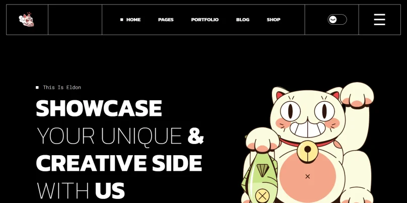 Оригинальный шаблон с поддержкой светлой и тёмной цветовой схемы. Подходит для портфолио анимации, комиксов, манги, а также студий цифрового искусства.