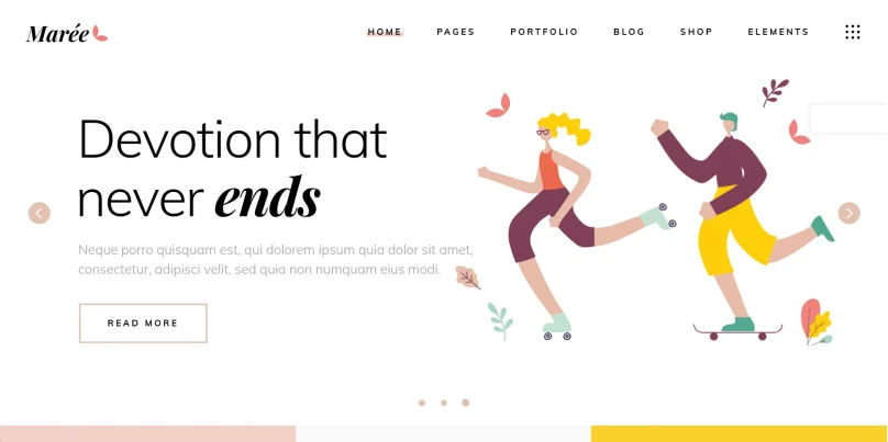 Современная тема с множеством готовых вариантов главной страницы. Поддерживает различные типы отображения портфолио: сетка, горизонтальное скроллирование, карусель. Отличный выбор для студий и независимых авторов.
