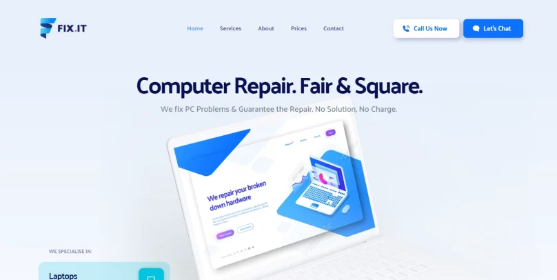 Простой, но очень эффективный шаблон, который подойдёт для ремонта компьютеров, телефонов и любой техники. Чистый дизайн и быстрая загрузка — его главные преимущества. Он адаптирован под услуги ремонта и подходит даже тем, кто не знаком с кодом.