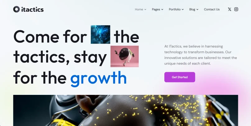 Универсальная тема с чистым дизайном и множеством макетов для страницы команды, портфолио и блога. Отлично подойдёт для агентств и сервисов, которые хотят рассказать о себе через визуальный контент.