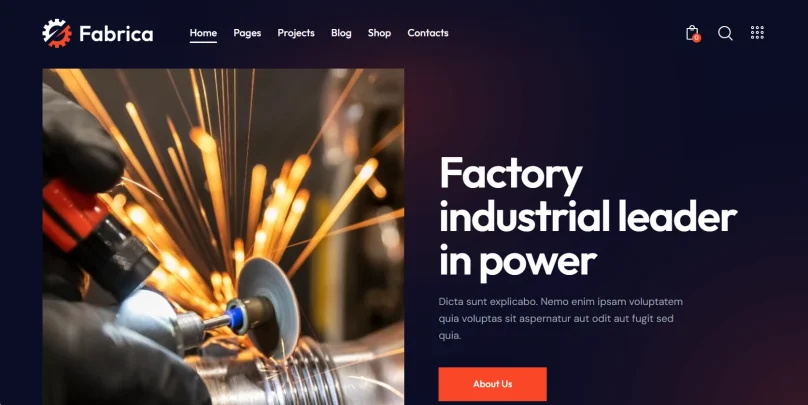 Fabrica — это премиум шаблон с динамичным интерфейсом, идеально подходящий для заводов, производственных объединений и инжиниринговых корпораций. В шаблоне есть поддержка слайдеров, AJAX-поиска и продающих блоков.