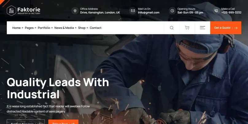 Один из самых универсальных шаблонов в подборке. Включает множество демо-сайтов: от обрабатывающей промышленности до пищевых и химических предприятий. Подходит для заводов, лабораторий, логистических и инжиниринговых компаний. Совместим с Elementor.