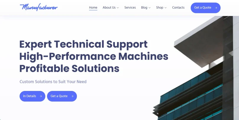 Шаблон с широкими возможностями настройки, адаптированный под нужды производственного бизнеса. Подойдёт для машиностроительных заводов, станкостроения, металлообработки. Готовые страницы включают: "О компании", "Производственные мощности", "Проекты", "Контакты" и другие.