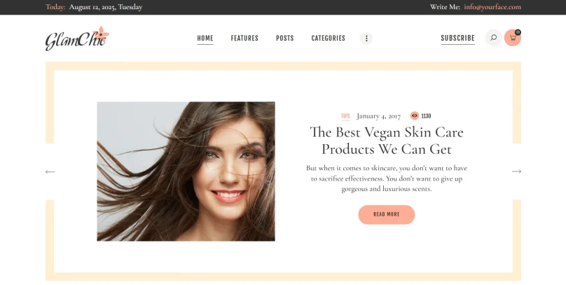 Стильная тема для модных блогов, онлайн-журналов, блогов о красоте и уходе.